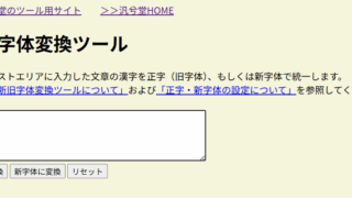 漢字 正字・新字体の設定について このページでは、新旧字体変換ツールにおける各文字の「正字」「新字体」の設定について公開する。このツールの作成経緯については「新旧字体変換ツールについて」を参照していただきたい。このツールはデータベースの検索の都合上、字体を統一する必要に迫ら... 2025.07.06 漢字